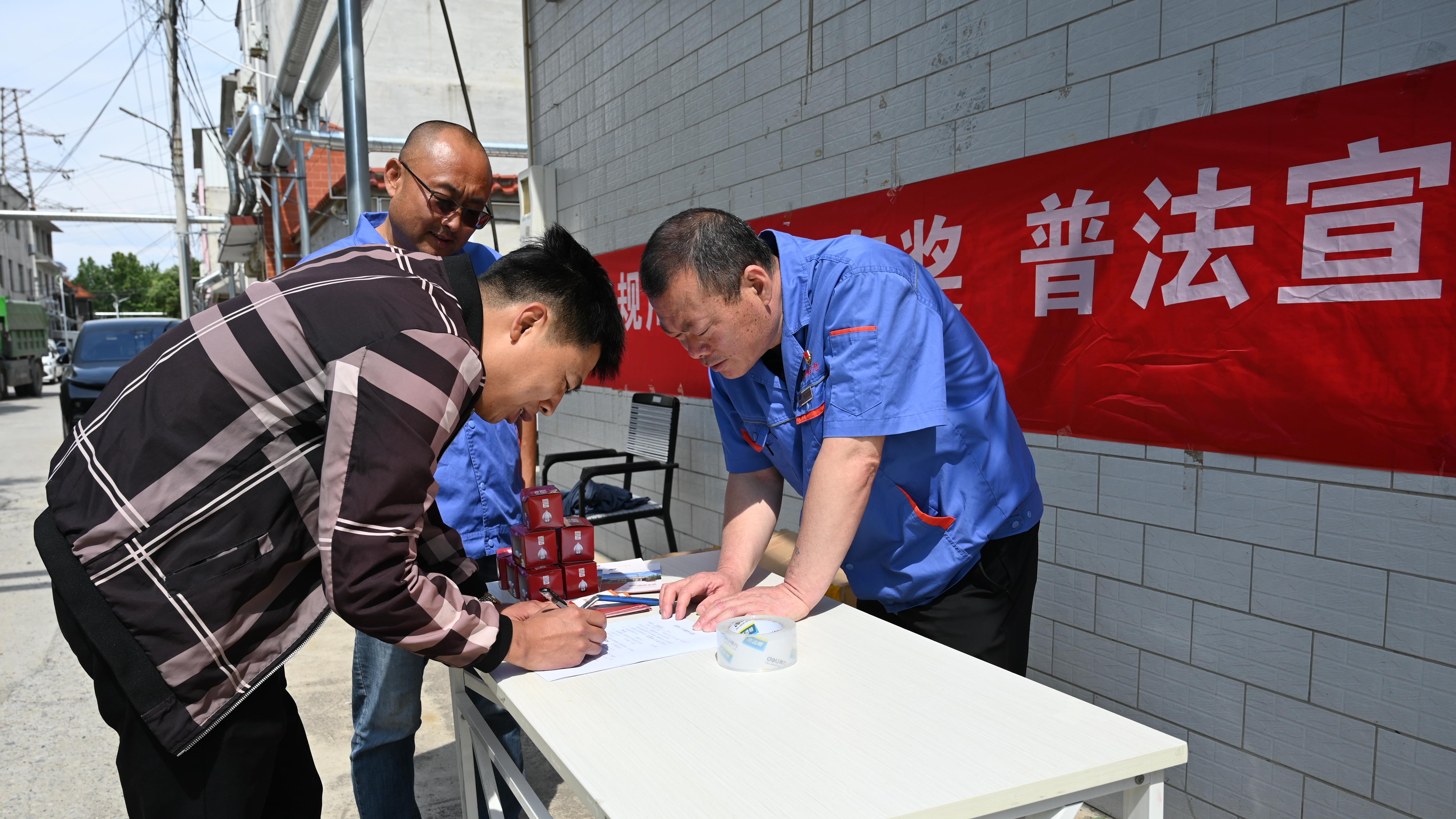活動現(xiàn)場,普法形式豐富多樣;槿藛T通過懸掛醒目宣傳橫幅、陳列法治宣傳展板、發(fā)放圖文并茂的供熱知識手冊,向過往居民普及規(guī)范用熱常識。同時設(shè)置互動環(huán)節(jié),邀請居民填寫《供熱工作調(diào)查問卷》,針對供暖前設(shè)備檢查、分水器清洗維護(hù)、暖氣不熱應(yīng)急處理等常見問題進(jìn)行現(xiàn)場答疑。
